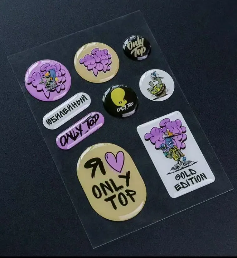 Jojo မှထုတ်လုပ်သောထုံးစံအတိုင်း epoxy စတစ်ကာများသည်မျက်နှာပြင်ပေါ်တွင်ကြည်လင်ပြတ်သားသော epoxy အလွှာရှိသည်။ ၎င်းသည်ပုံစံများကိုပိုမိုရှုထောင့်သုံးဖက်မြင်။ တောက်ပစေရုံသာမကစတစ်ကာများသည်အလွန်ကောင်းမွန်သောရေစိုခံနိုင်ပြီး 0 တ်ခံနိုင်သောဂုဏ်သတ္တိများကိုလည်းပေးသည်။ ၎င်းတို့သည်တယ်လီဖုန်းကိစ္စများ, ရေပုလင်းများ, မှတ်စုစာအုပ်များနှင့်ခရီးဆောင်အိတ်များကဲ့သို့သောပစ္စည်းအမျိုးမျိုးကိုအလှဆင်ခြင်း,