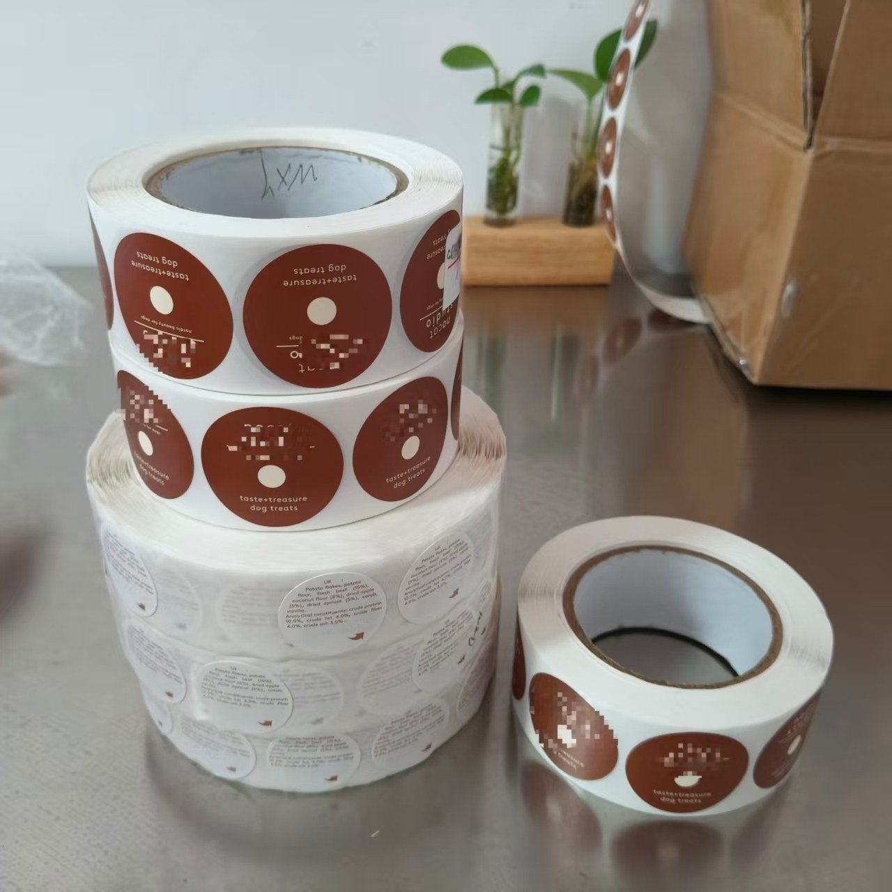 Jojo Packစိတ်ကြိုက်ခွေးစားနပ်ရိက္ခာထုပ်ပိုးစတစ်ကာများအားထုတ်လုပ်ခြင်း, စစ်ဆေးခြင်း, စစ်ဆေးခြင်းနှင့်ထုပ်ပိုးပြီးစီးခဲ့ပြီးစတစ်ကာများသည်ယခုအခါတင်ပို့ရန်အဆင်သင့်ဖြစ်နေပြီဖြစ်သည်။