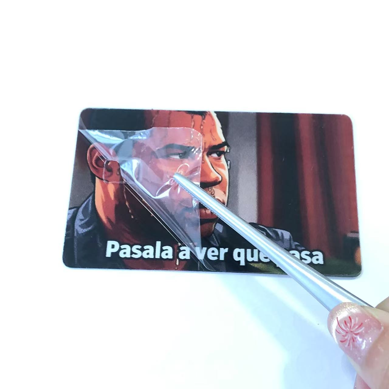သယ်ယူပို့ဆောင်ရေးကာလအတွင်း ထုတ်ကုန်အရည်အသွေးသေချာစေရန်၊ ခရက်ဒစ်ကတ်စတစ်ကာတစ်ခုစီသည် မျက်နှာပြင်ပေါ်တွင် အကာအကွယ်ရုပ်ရှင်တစ်ခု တပ်ဆင်ထားသည်။ ဤအကာအကွယ်အလွှာသည် စတစ်ကာများကို ခြစ်ရာများ၊ ဖုန်မှုန့်များနှင့် အကူးအပြောင်းတွင် ဖြစ်ပေါ်လာနိုင်သည့် အခြားသော ပျက်စီးမှုများမှ ထိရောက်စွာ ကာကွယ်ပေးပါသည်။ ကုန်ပစ္စည်းများလက်ခံရရှိသောအခါတွင်၊ ဖောက်သည်များသည် ခရက်ဒစ်ကတ်စတစ်ကာများ၏ ရှင်းလင်းပြတ်သားပြီး တက်ကြွသောအသွင်အပြင်ကို ဖော်ပြရန်အတွက် အကာအကွယ်ရုပ်ရှင်ကို ဖယ်ထုတ်ရန်သာလိုသည်။