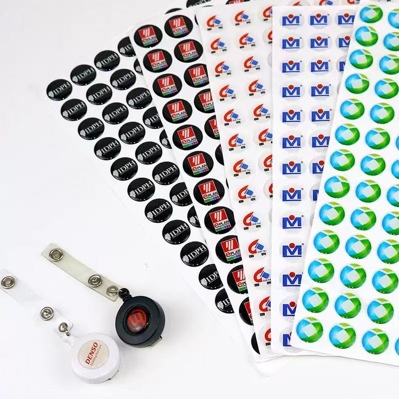အရောင်အသွေးစုံအရောင်ပုံနှိပ်ဗီနိုင်းအခြေစိုက်စခန်း 3D Crystal Decal Decal Decal Decal Decal Dome Road Epoxy Labels ။