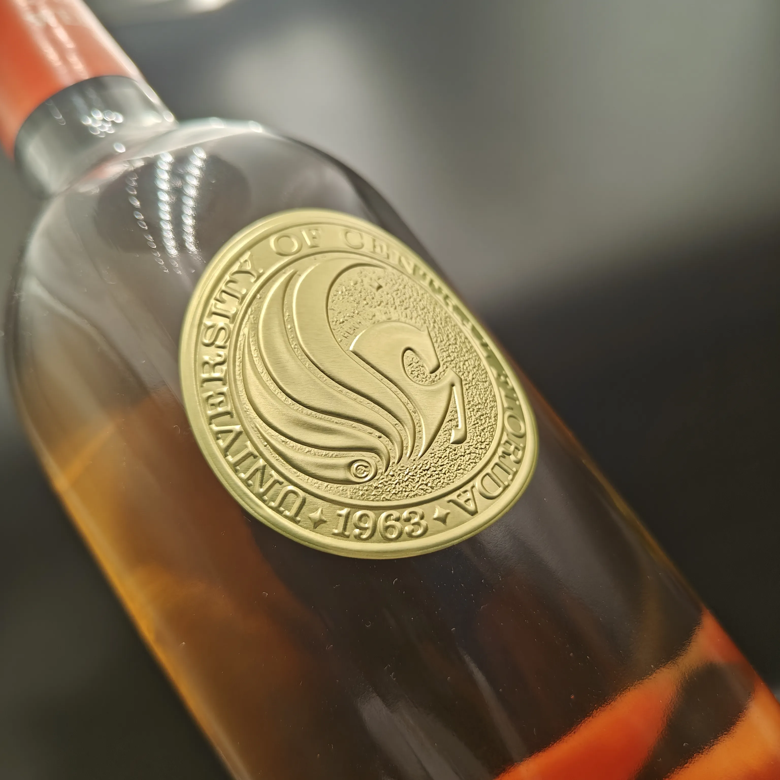 မြို့ပတ်ရထားပုံသဏ္ဌာန်သည်ကွေးသောဖန်ပုလင်းမျက်နှာပြင်ကိုအပြည့်အ 0 ကိုက်ညီပြီးဖောင်းကြွ / သတ္တုပါးအသေးစိတ်အချက်အလက်များသည်ပုလင်းခန္ဓာကိုယ်ပေါ်ရှိအမှတ်တံဆိပ်အမှတ်တံဆိပ်, စပျစ်သီးပြခန်းများ,