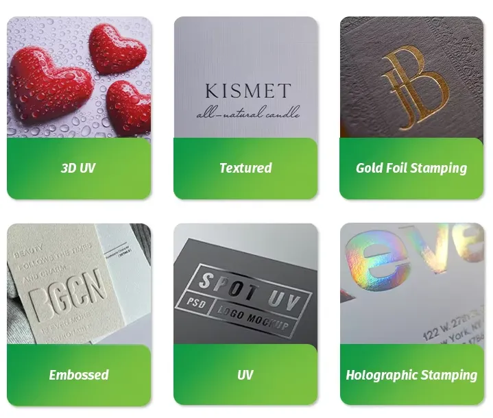 Bronzing: သတ်သတ်မှတ်မှတ်ဒီဇိုင်းဒြပ်စင်များသို့သတ္တုသတ္တုပါးကိုအသုံးပြုရန်အပူလွှဲပြောင်းခြင်းလုပ်ငန်းစဉ်ကိုအသုံးပြုသည်။ ၎င်းသည်ဇိမ်ခံအသိတရားထိတွေ့မှုနှင့်အမှတ်တံဆိပ်သို့မဟုတ်သော့ချက်စာသားများကိုမြှင့်တင်သည်။