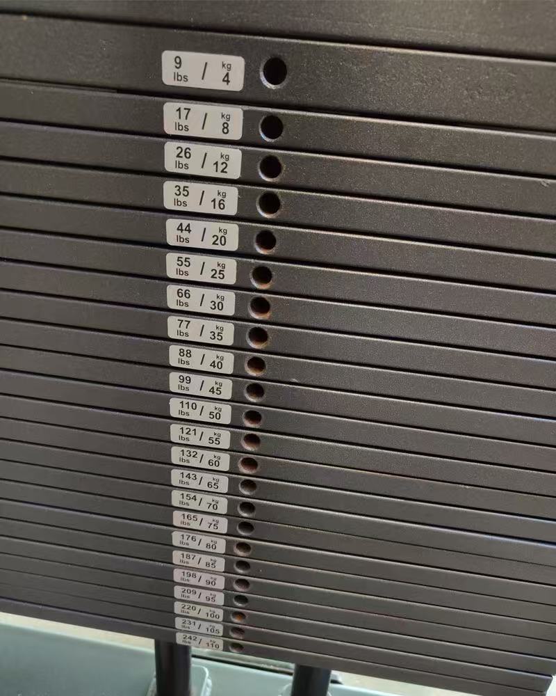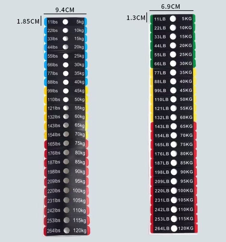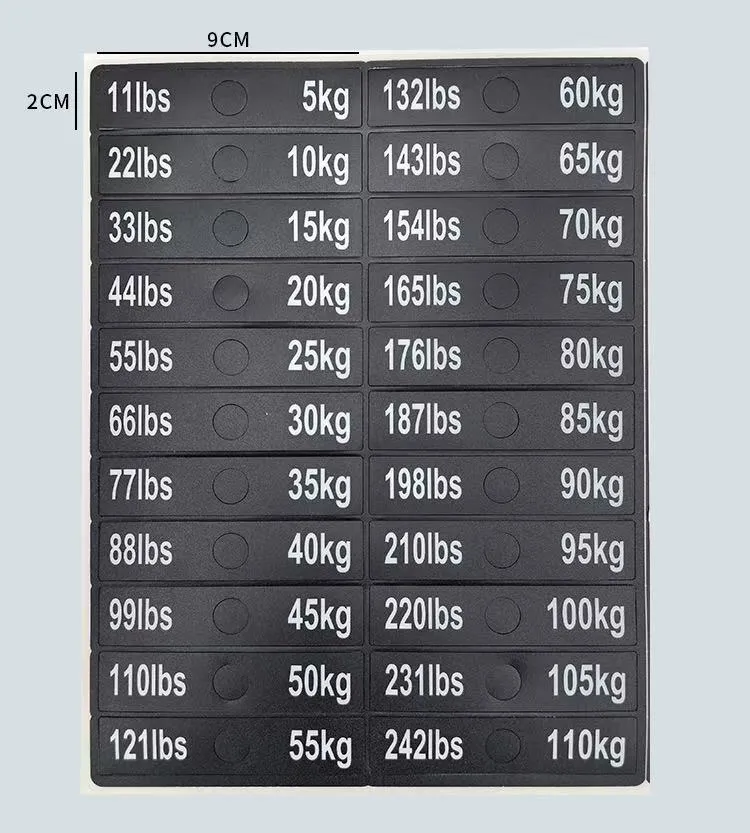 စတစ်ကာတစ်ခုစီကို အလေးချိန်တန်ဖိုးများဖြင့် ရှင်းရှင်းလင်းလင်း မှတ်သားထားပြီး၊ အသုံးပြုသူများသည် ၎င်းတို့၏ လေ့ကျင့်မှုပြင်းထန်မှုအတွက် သင့်လျော်သော အလေးချိန်တုံးများကို လျင်မြန်စွာ ဖော်ထုတ်ရွေးချယ်နိုင်စေကာ လေ့ကျင့်ခန်းများ ပြုလုပ်နေစဉ် မကြာခဏ အလေးချိန်ကို ရှောင်ရှားနိုင်စေပါသည်။