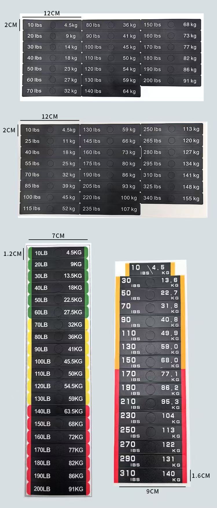 A1- အလေးချိန်စတစ်ကာများ၏ အဓိကပစ္စည်းမှာ PVC ဖြစ်ပြီး 1.859.4cm၊ 1.36.9cm၊ 1.2*3.2cm စသည်ဖြင့် တူညီသောသတ်မှတ်ချက်များ ပါဝင်သည်။